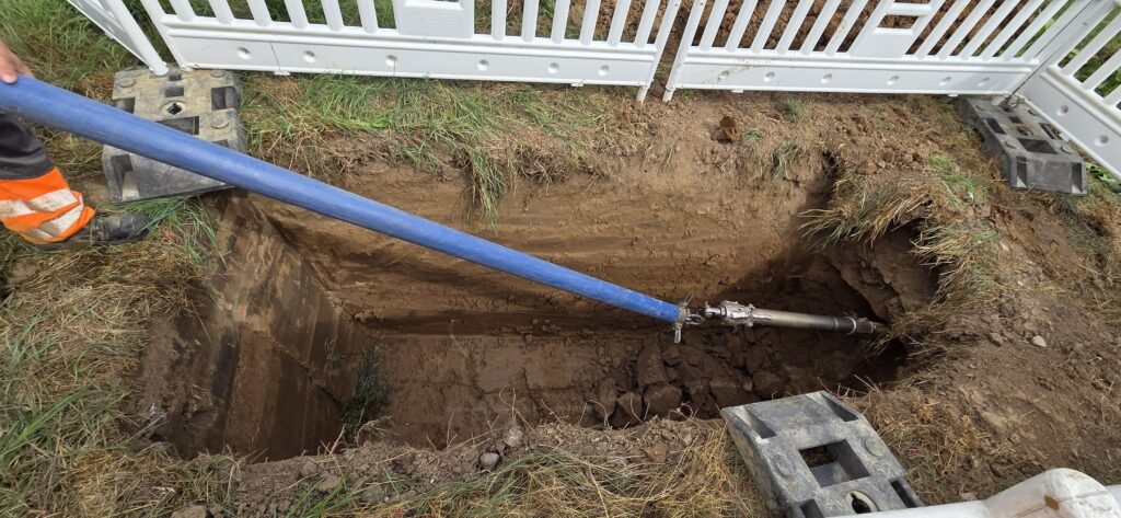 Besonderheit: Kampfmittelsondierung während der Bohrung. Anbringen einer Sonde nach der Pilotbohrung.